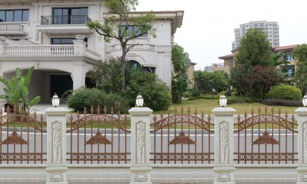 可拆裝,無焊接制作安裝簡便快捷,采用專利的連接件,大大提高安裝效率。運輸便捷,一定程度上節省了運費。, 一、門框放入門洞時必須上下平行左右垂直,如門洞比門框大一公分以上時,必須用石塊或木塊將門框的膨脹螺絲墊實,在門框左上右下先打膨脹螺絲,不要擰緊,羅馬柱的門應先裝羅馬柱到門框上,然后再放入門洞。, 為了避免金屬生銹,能夠按期用棉布蘸上少量的防銹油或縫紉機油擦拭表層局部,堅持鐵藝欄桿光亮如新。, 高級鐵藝制作的表面裝飾效果漆色彩豐富,多采用進口漆手繪,既古樸典雅,又時尚流行.最經典的表面裝飾效果漆有青古銅色、紅古銅色、古銅金、黑色、銅金邊、白色金邊等。, 1、造價比較實會。